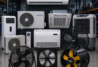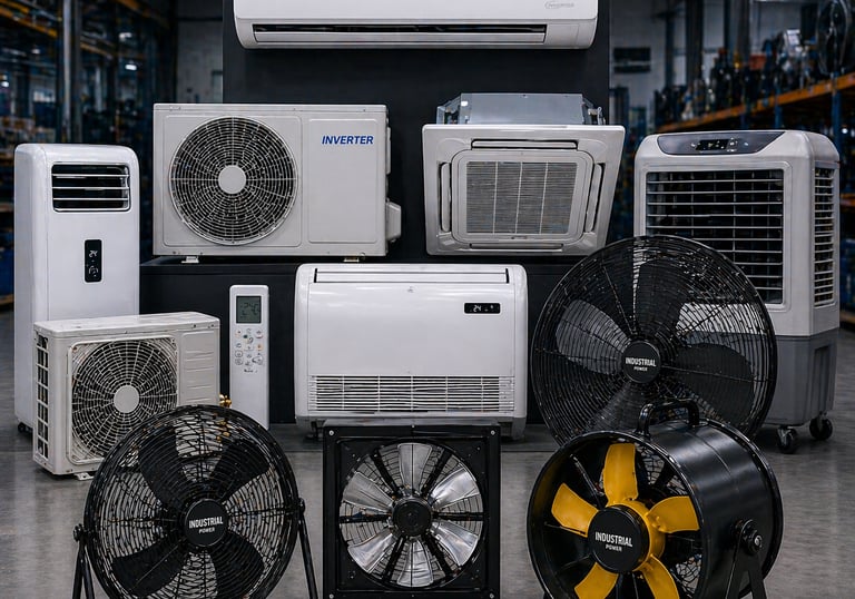 Soluções de climatização voltadas para ambientes industriais, com ar-condicionados e ventiladores de alta robustez e desempenho. Equipamentos projetados para suportar operações intensas, garantindo eficiência térmica, durabilidade e produtividade contínua.