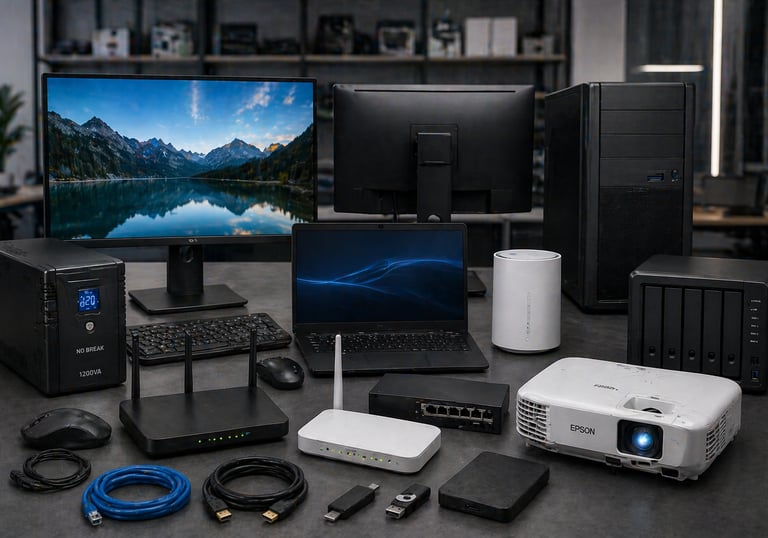 Oferecemos uma linha completa de produtos de informática, incluindo monitores, nobreaks, projetores, modems e equipamentos de rede. Trabalhamos com soluções confiáveis e de alta qualidade, ideais para empresas que buscam desempenho e estabilidade.